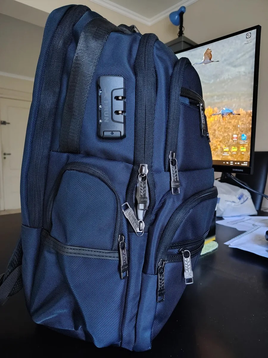 Tiene compartimiento para notebooks (hasta 17¨), tiene un espacio de especial para ocultar documentacion.