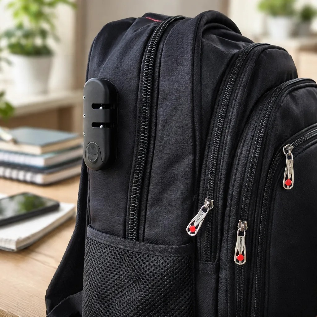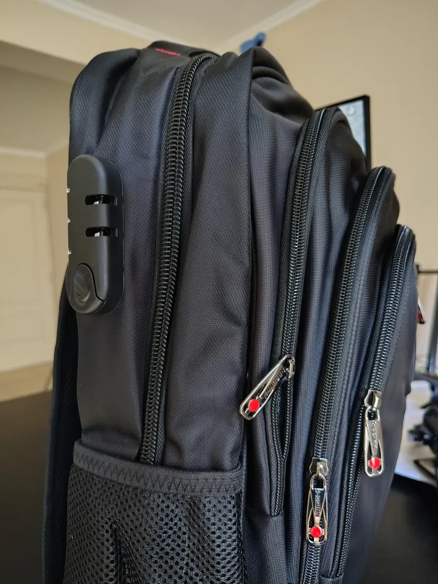 Tiene compartimiento para notebooks (hasta 17¨), tiene un espacio de especial para ocultar documentacion.